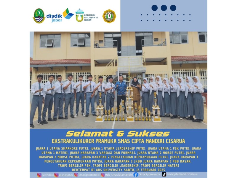 Selamat kepada ekstrakurikurer Pramuka atas prestasi gemilang yang telah diraih! Kerja keras, dedikasi, dan semangat kalian telah membuahkan hasil yang membanggakan. Semoga prestasi ini menjadi motivasi untuk terus berkembang dan meraih kesuksesan yang lebih besar di masa depan! ...