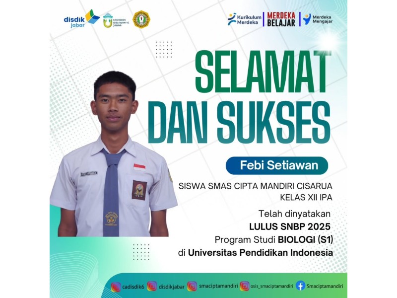 Selamat kepada Febi Setiawan kelas XII IPA atas kelulusan SNBP 2025! Kerja keras dan dedikasi belajarmu selama ini telah membuahkan hasil yang membanggakan. Semangat terus untuk meraih cita-cita. ...
