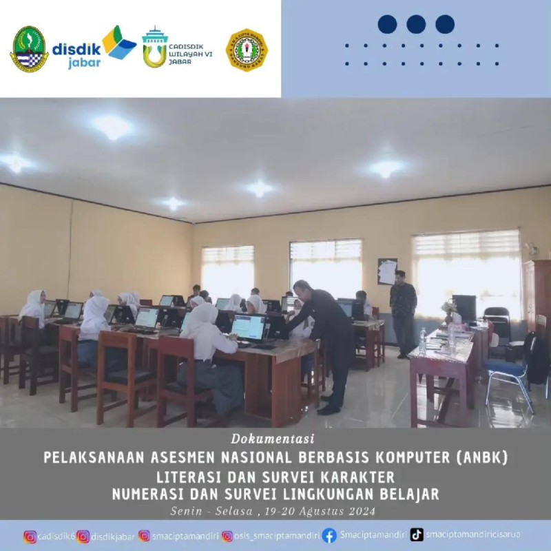 Asesmen Nasional Berbasis Komputer (ANBK) SMAS Cipta Mandiri Melaksanakan Kegiatan ANBK Pada Gelombang 1 yaitu pada tanggal 19-20 Agustus 2024. dan diikuti oleh 50 Siswa/i 45 Sebagai Peseta Tetap dan 5 orang sebagai cadangan dengan mode Daring / Full Online.