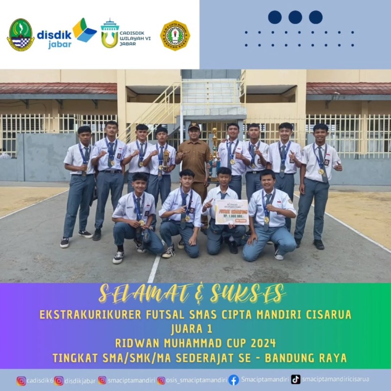 Congratulations!!! Ekstrakurikuler Futsal kembali mendapatkan Juara 1 Pada Turnamen Ridwan Muhammad CUP Tahun 2024 yang dilaksanakan pada Hari Kamis, 14 November 2024.