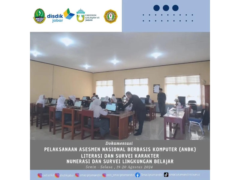 Asesmen Nasional Berbasis Komputer (ANBK) SMAS Cipta Mandiri Melaksanakan Kegiatan ANBK Pada Gelombang 1 yaitu pada tanggal 19-20 Agustus 2024. dan diikuti oleh 50 Siswa/i 45 Sebagai Peseta Tetap dan 5 orang sebagai cadangan dengan mode Daring / Full Online....