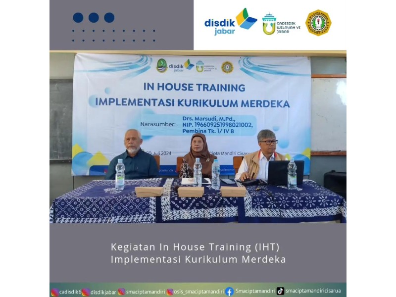 In House Training (IHT) bersama Bapak Drs. Marsudi, M.Pd,. tentang Implementasi Kurikulum Merdeka yang dilaksanakan pada Hari Sabtu Tanggal 20 Juli 2024 bertempat di SMAS Cipta Mandiri Cisarua ...